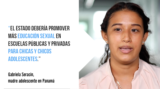 Gabriela Seracin, madre adolescente de un bébé de dos años de edad en Panamá, explica que «el estado debe promover más educación sexual para las niñas y los niños en las escuelas públicas y privadas».