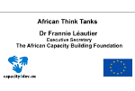 April: Supporting African Think Tanks, a Smart Example of Capacity Development African think tanks prove useful in researching, influencing, designing and implementing policies and can therefore be used by development practitioners in project cycles, said Dr Frannie Léautier, Executive Secretary of the African Capacity Building Foundation (ACBF), a Zimbabwe-based organisation that supports 39 think tanks in 25 African countries. |