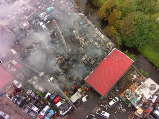 An aerial view of a damaged building can help fire fighters make decisions before entering. Image: GMFRS, November 2015.