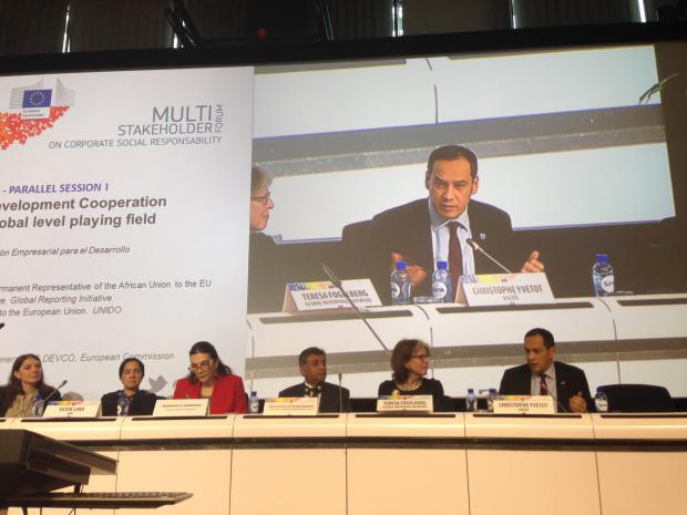 The United Nations Industrial Development Organization (UNIDO) took part in the Multi-Stakeholder Forum on CSR held in Brussels on the 3rd and 4th of February. Mr. Christophe Yvetot, the Head of UNIDO Liaison Office to the European Union was invited as speaker on the panel “International Development Cooperation – towards a global level playing field”.
