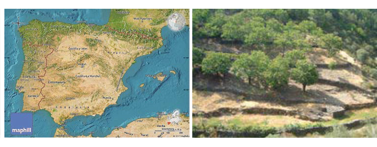 To prevent fire cases, plantation barriers are widely used in Spain, with different density and species to stop incidental fire in natural ways. Plantation barriers are mostly orange and almonds orchards. In order to improve cultivation livelihood level of the plantation barrier, one of the options is to plant high-quality wine cultivation in mountain areas at 500 m height.