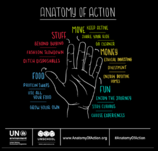 Launched through a 15 days pilot social media challenge in September 2019, and feeding into the #ActNow campaign that supported the Climate Action Summit in New York, the Anatomy of Action structure transforms the Sustainable Development Goals (SDGs) into low effort and high impact individual actions that enable people to live better and lighter. The Challenge was used to illustrate that in just 15 days, social media efforts could touch more than 5 million people all over the World. Early December 2019, Ms Garrette Clark, Sustainable Lifestyles Programme Officer at UNEPs Consumption and Production Unit, came to Brussels to explain how the Anatomy of Action can help promote change – for everyone everywhere. Read more here.