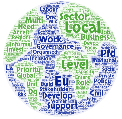 This year’s Virtual PFD continued in October and November with a series of three thematic webinars on “An Economy for the people” (20 October), the Green Deal (27 October) and Digitalisation (3 November). These meetings were part of a broader consultation process among PFD members to provide input into EU programming and built on the results of the PFD regional meetings organised in July 2020, as well as the first global virtual meeting with DEVCO Director General Koen Doens in September 2020. In each webinar, thematic experts of the European Commission were present to give a short overview of the respective topic and to answer PFD members’ questions. A detailed summary of each thematic meeting can be found at our dedicated event page.