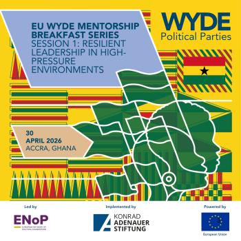 On 30 April 2026, the first session of the EU WYDE Mentorship Breakfast Series will take place in Accra, Ghana, bringing together emerging political leaders for an interactive exchange on leadership and decision-making. The session is organised by the Konrad-Adenauer-Stiftung (KAS) Ghana Office within the framework of the WYDE Political Parties project, led by the European Network of Political Foundations (ENoP) and funded by the European Union.