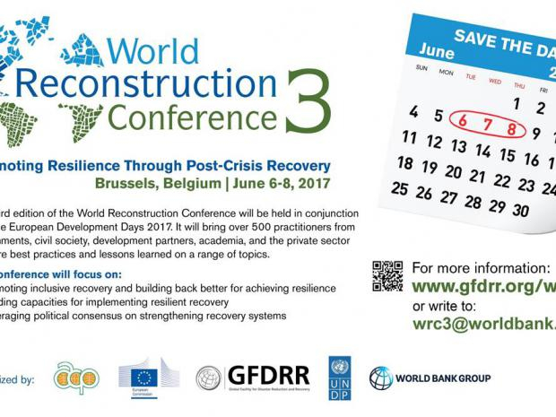 The 3rd edition of the World Reconstruction Conference will be held in conjunction with the European Development Days 2017. It will bring over 500 practitioners from governments, civil society, development partners, academia and the private sector to share best practices and lessons learned on a range of topics.