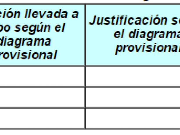 - justificación según el diagrama definitivo; teniendo en cuenta los resultados del test consignados en la tabla B (etapa 5), columna 4;