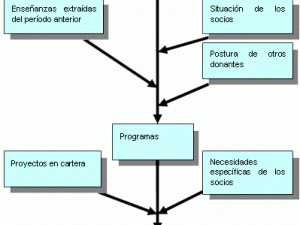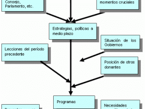 Representación explícita de las elecciones Las estrategias de cooperación y las políticas de intervención de los donantes, nacionales o multinacionales, obedecen a objetivos explícitos o implícitos. Los documentos que los presentan exponen en general un conjunto de objetivos más o menos jerarquizados (véase la forma compleja del diagrama de objetivos), entre los cuales pueden distinguirse uno o (más raramente) varios objetivos globales, los objetivos operativos relativos a los proyectos concretos de ayuda y los objetivos intermedios de distintos niveles.