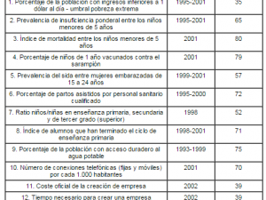 Algunos de los indicadores coinciden con los de los sistemas de las Naciones Unidas, otros son específicos. Lista de indicadores