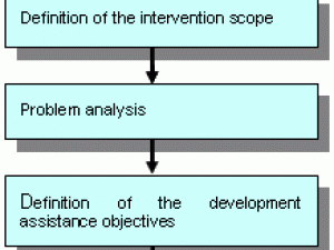 La evaluación debe tener en cuenta esta situación. El análisis de los problemas y el diagrama que haya podido o pueda resultar de él derivan de la definición del campo de la intervención y, por lo tanto, de los objetivos generales del donante (Comisión Europea), y prepara así la definición de los objetivos específicos de la asistencia concreta que debe proporcionarse durante el periodo cubierto por la estrategia.
