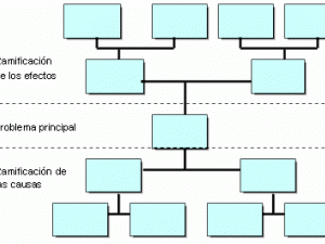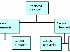 El diagrama que se muestra más abajo representa un caso sencillo en el que se han identificado tres niveles de problemas: les causas profundas, las causas intermedias y el problema principal.