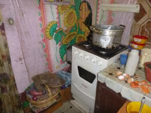 The house where she lives is too small for such a big family. She only occupies a single room that is divided from the other bedrooms by curtains. In the second area of the house there are the kitchen and the dining room, where she uses to spend the biggest part of her time by preparing “rellenos, pollo y salchichas con papas”. However, the frying is done in her food cart. Approximately she has an income of 80 \ 130 Euros per month. Her best clients are the students from Kennedy college. |
