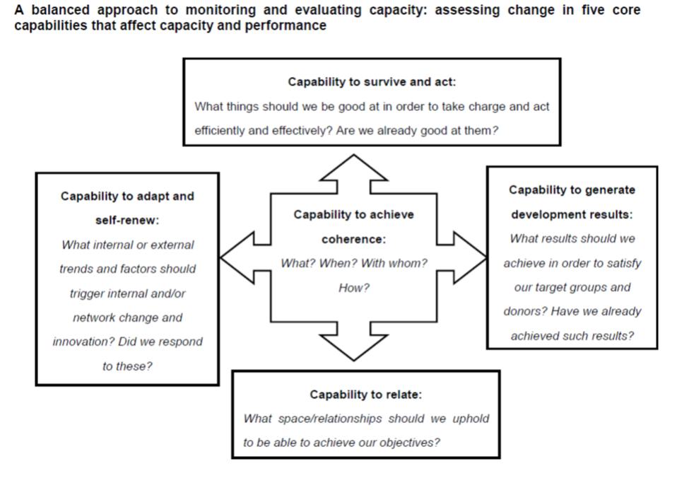 See also ECDPM Reference document for using the 5Cs framework to plan, monitor and evaluate capacity and results of capacity development processes