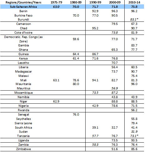 Table 3: Share of employment in the informal economy in total non-agricultural employment by decade in Sub-Saharan Africa.