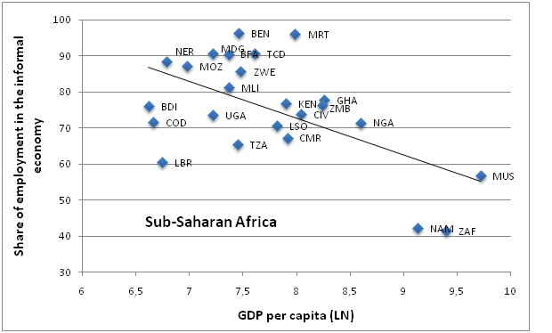 Figure 5: Relationship between employment in the informal economy and GDP per capita