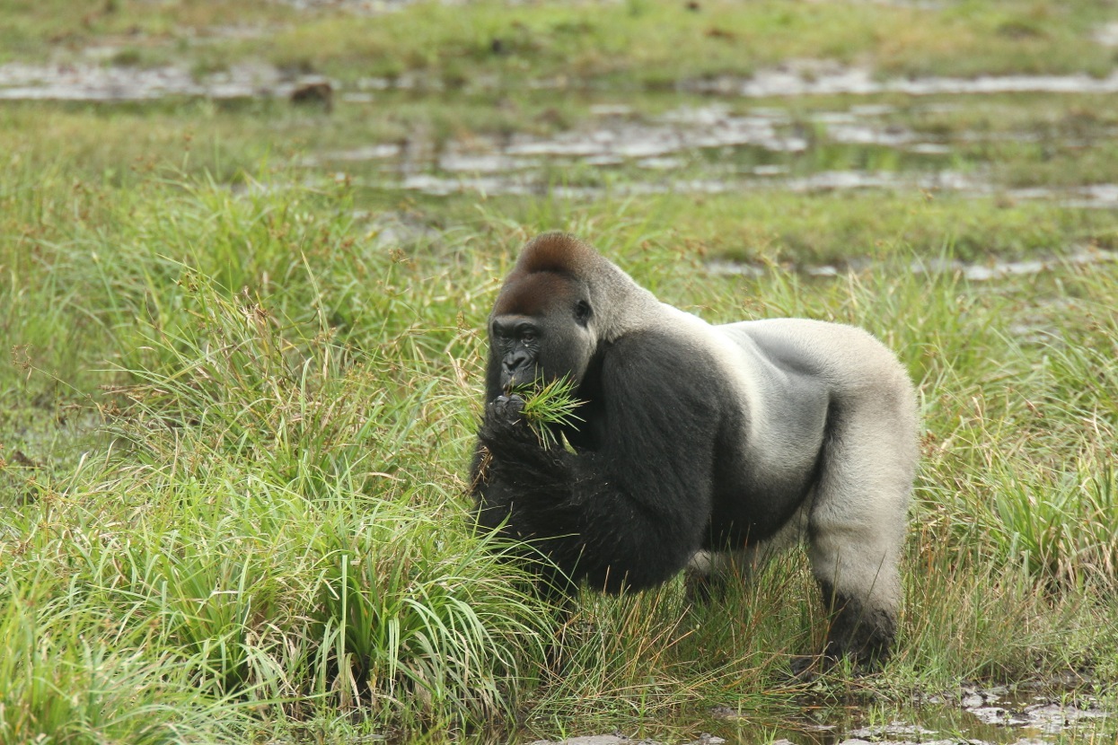 This most common species of gorilla is threatened by habitat destruction and the ebola virus: in some areas 80% of the population has been killed by ebola in recent years. Copyright EC, credit Tanguy Dumortier
