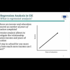 These slides were used for the second day of an online training on the topic Data Analysis for Monitoring and Counterfactual Impact Evaluation, the slides cover regression analysis for CIE to identify a causal impact of a program and to control for confounding variables. A detailed introduction on qualitative methods usage in impact evaluation research was given to the participants in the training. This included how to use qualitative and quantitative data in triangulation for CIE.