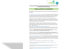 The following document is a report generated at the end of Day 1 of the E-meeting on "Agriculture is Small Island economies: How to re-build after climate disasters? (Natural disasters)"