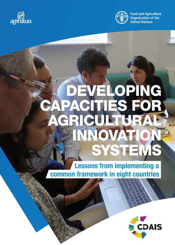 Toillier A., Guillonnet R. Bucciarelli M. & Hawkins R., 2020. 116 pages. Developing capacities for agricultural innovation systems: lessons from implementing a common framework in eight countries. Rome, FAO and Paris.