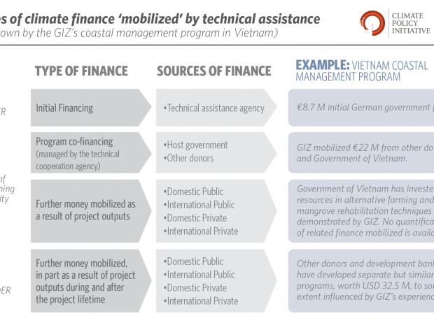 The indirect mobilization effect of technical assistance is difficult to quantify due to the long-term nature of the effects and its interactions with other key drivers, but in-depth case studies can track the ways in which such assistance has contributed to increased finance and contribute to the development of refined methodologies.