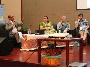 The sustainable agricultural session at the Private Sector Partnership’s Forum, part of the Third International Conference on Small Islands Developing States, was moderated by CTA Director Michael Hailu and featured Seth Kaurua from Tanna Farms Vanuatu, Shadel Compton from Belmond Estate Grenada, Bruce Russel from Poutasi Development Trust Samoa and Prof. Clement Sankat from the University of West Indies Trinidad and Tobago.
