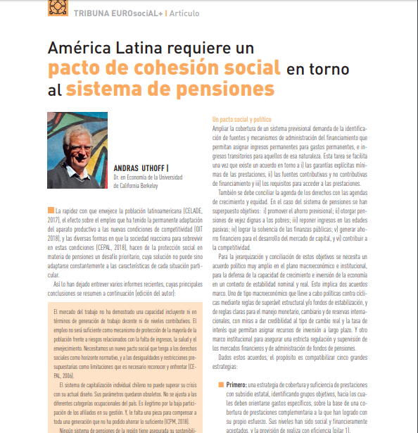 Artículo Andras Uthoff, "América Latina requiere un pacto de cohesión social en torno al sistema de pensiones", Revista Recíprocamente págs. 24-25