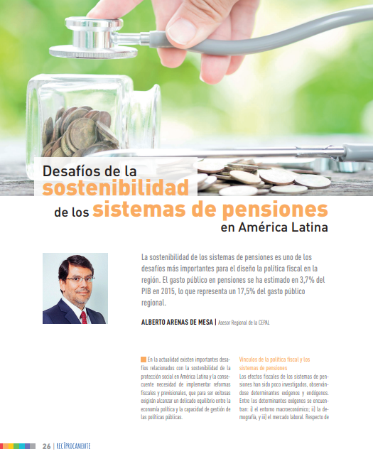 Artículo Alberto Arenas de Mesa "Desafíos de la sostenibilidad de los sistemas de pensiones en América Latina", Revista Recíprocamente págs. 26-27