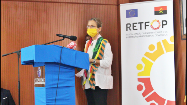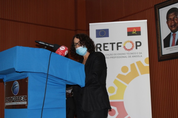 Na sua intervenção, a Ministra da Administração Pública, Trabalho e Segurança Social, Dra. Teresa Rodrigues Dias, fez saber que é uma ocasião especial estar presente numa das primeiras acções do RETFOP já concluídas, relembrando as orientações do Governo de Angola quanto à necessidade de se investir muito seriamente na educação dos Jovens e na sua formação técnico-profissional ajustada as necessidades do mercado de trabalho e ao desenvolvimento do país. Adiante, a Sra. Ministra realçou a importância do apoio da União Europeia nesta acção e em outras acções no âmbito do RETFOP, destacando o programa de estágios profissionais, a lançar em breve.